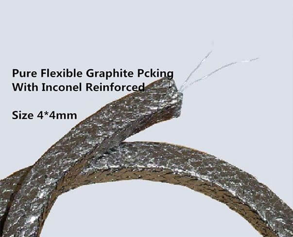 Graphite packing reinforced with wire is braided from expanded graphite yarns, reinforced with metal wire, normally reinforced with inconel wire.It retains all the inherent benefits of flexible graphite packing.