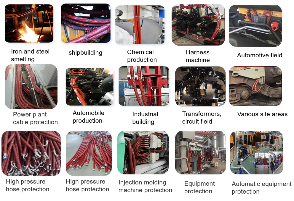 High temperature areas, heating area cables, fluid pipelines, rolling mill cables, tubing, sawing perimeter cables, generator sets, electrical voltage equipment, large buildings,